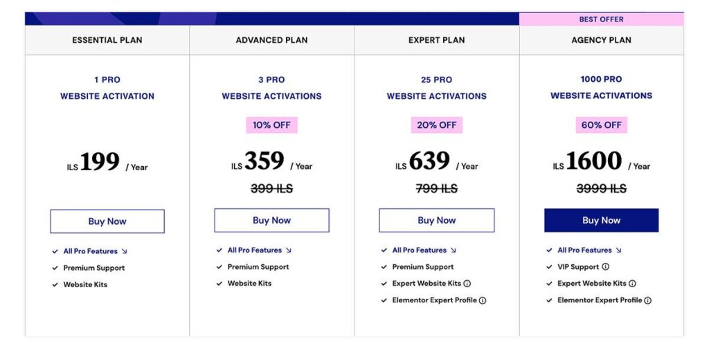 שזה בפני עצמו חסכון לא קטן! אם מפצלים את זה אז משלמים שנתי לאחסון ושנתי לתוסף של אלמנטור PRO.