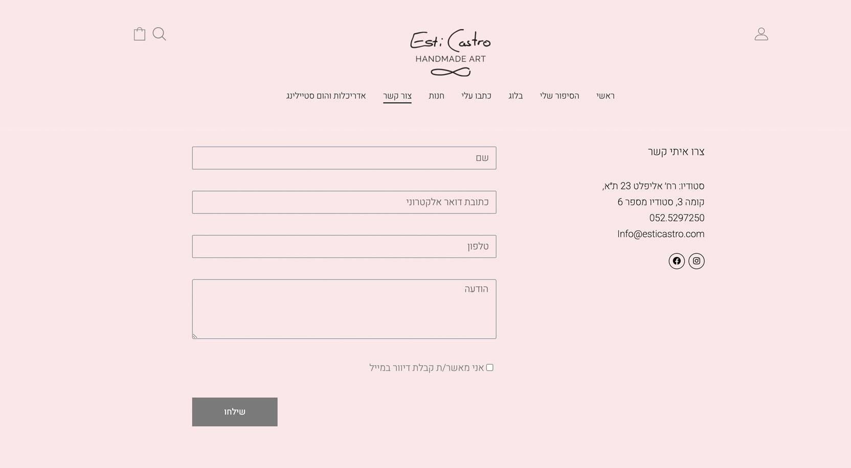 אתר סחר של האמנית אסתי קסטרו, באתר נמכרים המוצרים הייחודיים של אסתי, כולם עבודת יד המיוצרים בסטודיו של אסתי.