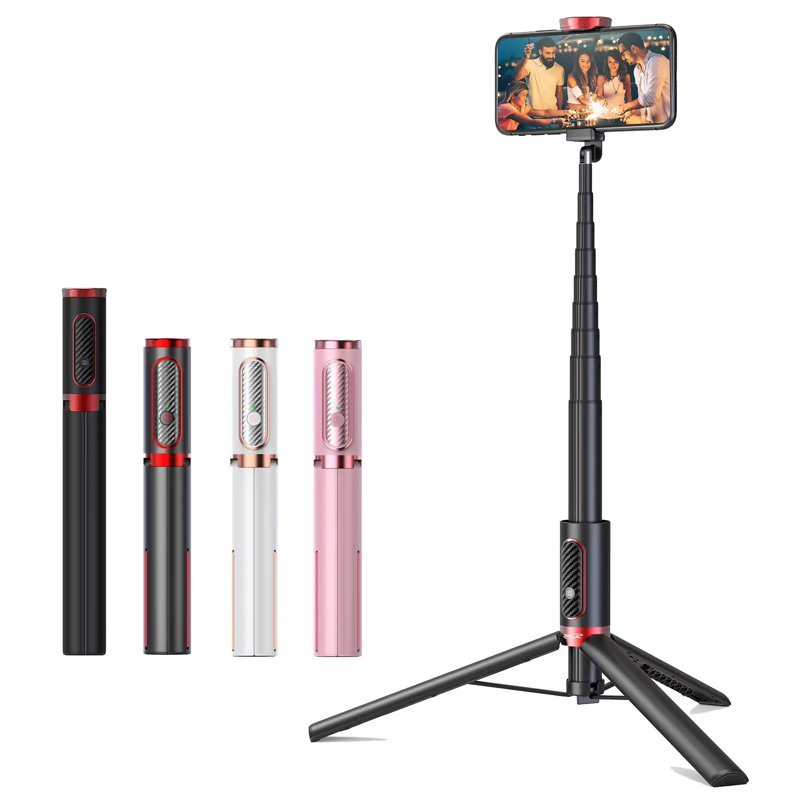 מוט סלפי משולב עם חצובה ושלט אלחוטי לצילום מרחוק. נפתח עד 150 ס"מ, קומפקטי ונוח לטיולים ולצילום עצמי.